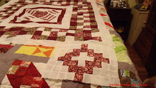 These stop it from being a square. Very ingenious. The second one looks green but it's the same fabric that's in the main part. Just has some burgundy in it. These take a while to make but maybe by the end of the week I will have six more done and added.